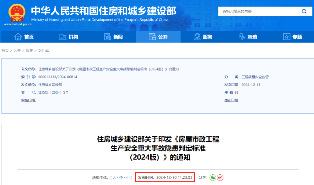 住房城鄉(xiāng)建設(shè)部關(guān)于印發(fā)《房屋市政工程生產(chǎn)安全重大事故隱患判定標(biāo)準(zhǔn)(2024版)》的通知各省、自治區(qū)住房城鄉(xiāng)建設(shè)廳,直轄市住房城鄉(xiāng)建設(shè)(管)委,北京市城市管理委,上海市交通委,新疆生產(chǎn)建設(shè)兵團(tuán)住房城鄉(xiāng)建設(shè)局,山東省交通運(yùn)輸廳:現(xiàn)將《房屋市政工程生產(chǎn)安全重大事故隱患判定標(biāo)準(zhǔn)(2024版)》印發(fā)給你們,請(qǐng)認(rèn)真貫徹